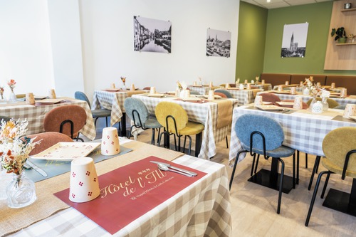 cet hôtel trois étoiles est situé au calme, dans une rue à sens unique. Vous serez chaleureusement accueilli à la réception. L'hôtel dispose d'une grande terrasse et d'un salon convivial, parfaits pour se détendre après une journée de visite. Chaque matin, un petit déjeuner buffet est servi de 7 à 10 h, avec entre autres des produits locaux. Parking public Les Bateliers à 4 min. à pied: à p.de € 24/24h.