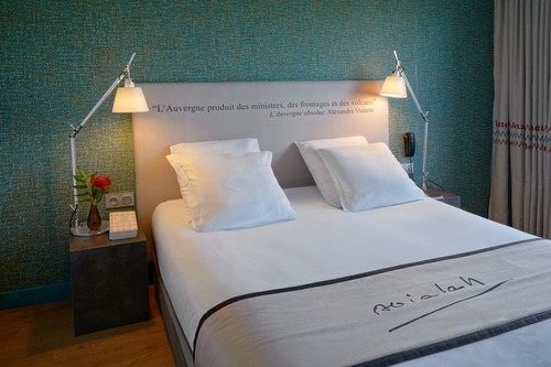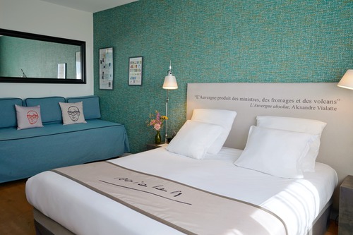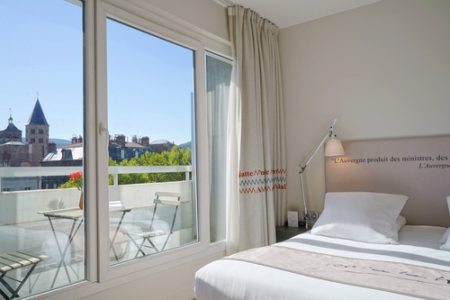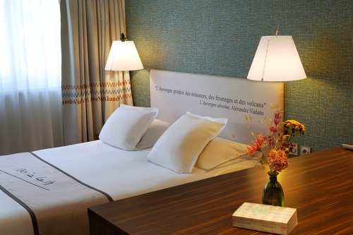 ruime lobby met gezellig ingerichte zithoekjes. Bar (17 tot 23 u) en bibliotheek. Overal vindt u verwijzingen naar het werk van Alexandre Vialatte, die in deze stad heeft gewoond. U neemt het ontbijt, op basis van lokale en huisgemaakte producten, op de hoogste verdieping van het hotel, het fraaie zicht op de vulkanen en de stad krijgt u er gratis bij. Gratis fitness. Privéparking vanaf € 14/24 uur.